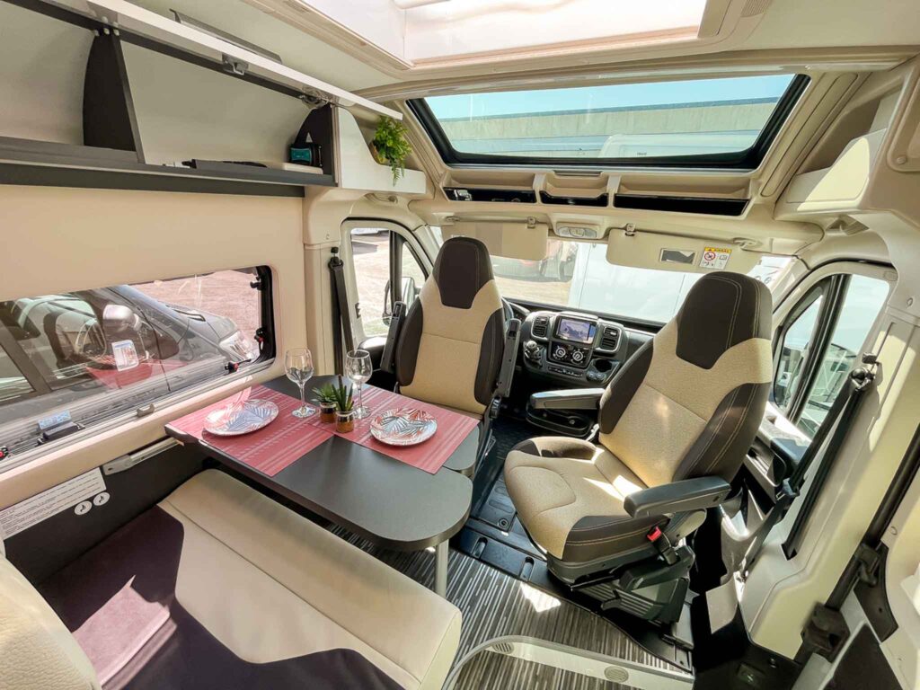 Las campers y autocaravanas actuales están equipadas con todo lo necesario: camas, cocina, baño, almacenamiento y zonas de descanso. Todo está diseñado para optimizar el espacio y ofrecer una experiencia confortable durante todo el viaje. - Ideal para viajar en familia